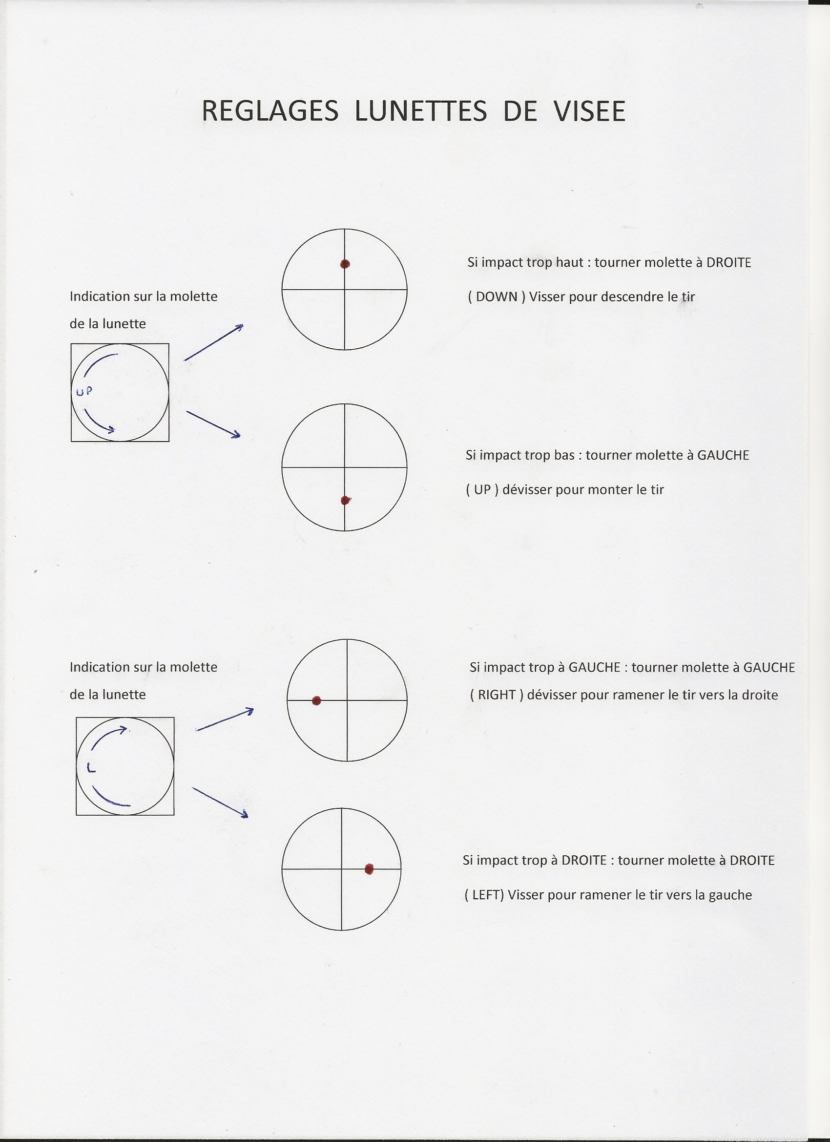 Les adhérents qui viennent tirer le mercredi et le samedi avec des armes d'épaules trouveront les réponses aux questions posées concernant le réglage de la lunette de tir. Toutes les adhérents qui souhaitent faire des réglages peuvent nous contacter ou venir durant ces séances.